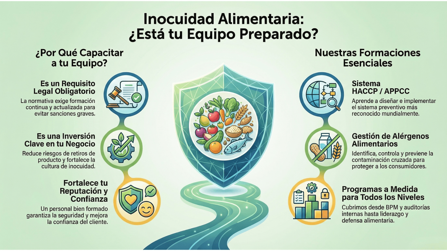 Pero más allá del cumplimiento normativo, capacitar a tu equipo es una inversión clave en la seguridad, eficiencia y reputación de tu negocio. Un personal bien formado previene errores críticos, reduce riesgos de retiro de productos o sanciones, y fortalece la cultura de inocuidad a todos los niveles de la organización.