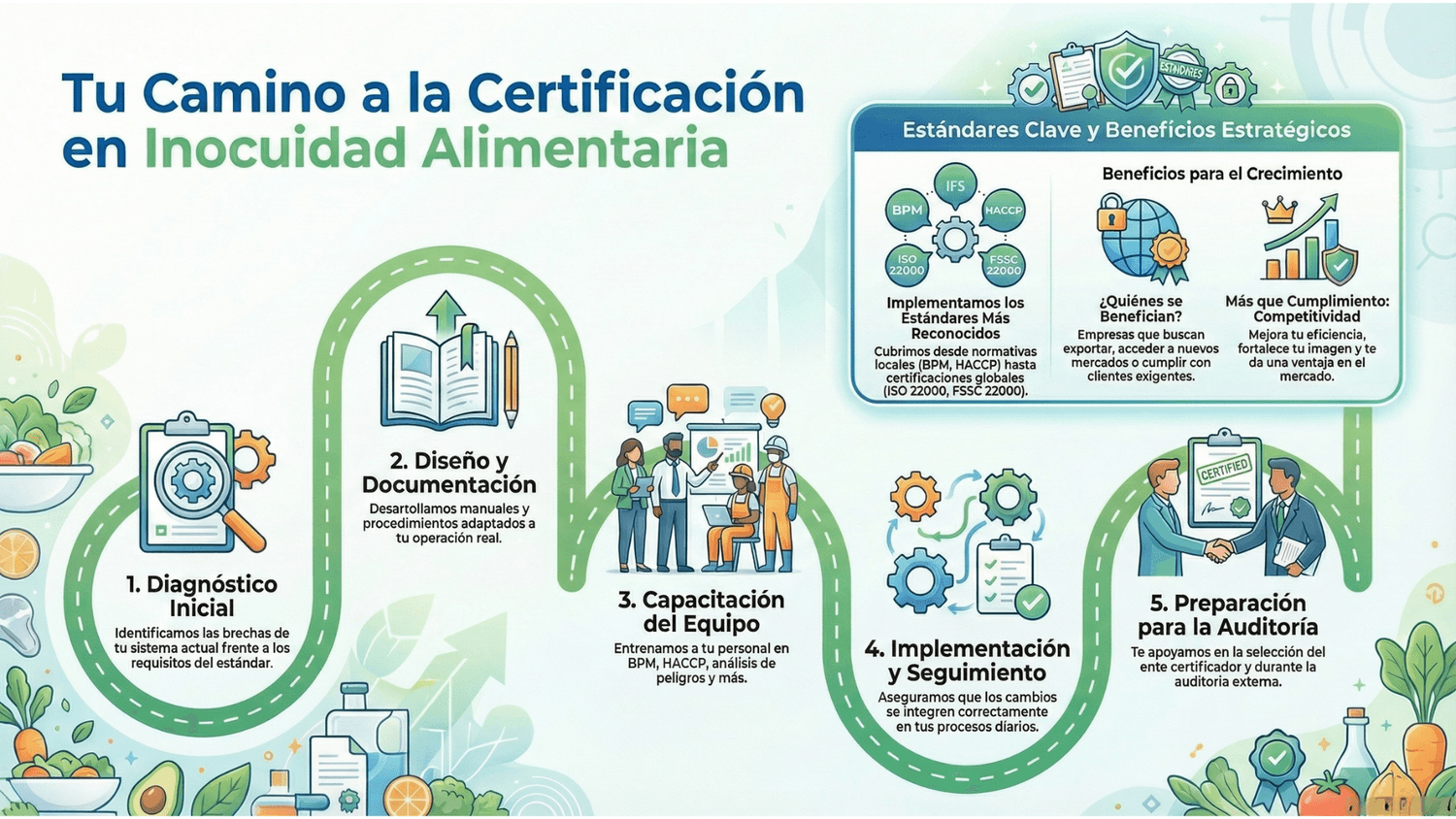 Implementamos sistemas de gestión de inocuidad y calidad alimentaria ajustados a tu empresa.
